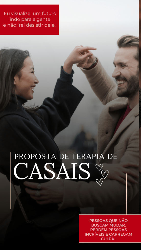 É com satisfação que apresento a proposta para a Terapia de Casal, um espaço dedicado a promover o entendimento, a comunicação saudável e a resolução de conflitos, com o objetivo de fortalecer, trazer leveza, afeto mais cuidado, amor e respeito para o relacionamento de vocês.